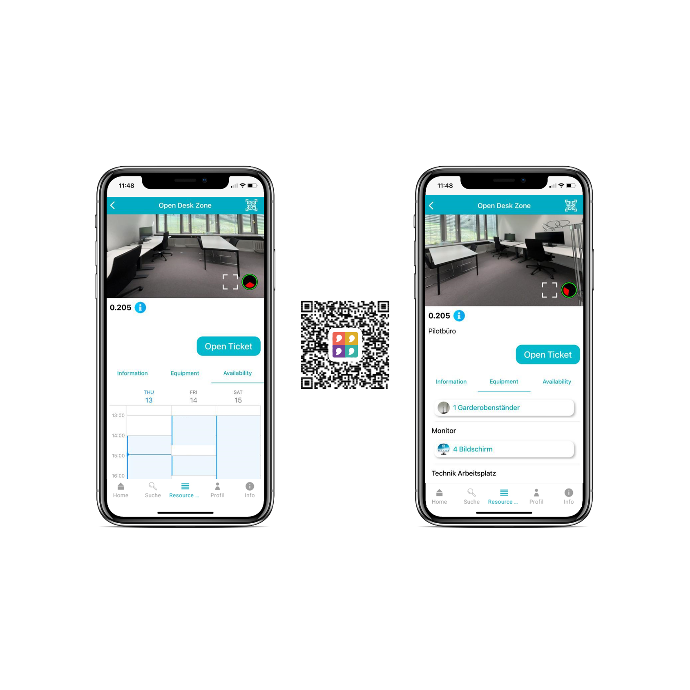 Fragen oder Beschwerden zum Raum können per QR-Scan erfasst und direkt an den Helpdesk gesendet werden.